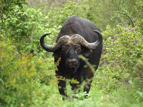 The Cape Buffalo is among the most lethal and dangerous animals known to humans. In fact, Cape Buffalos kill more humans in Africa than any other animal. They are enormous, weighing 1.5 tons, almost two meters high and three meters long. If threatened they will charge you at 35 miles per hour and slice you in half with razor sharp horns. Its nickname in Africa is the Black Death.