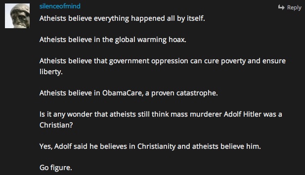The first comment of mine that was used here comes from post that tried to use Adolf Hitler to taint Christians and Christianity.