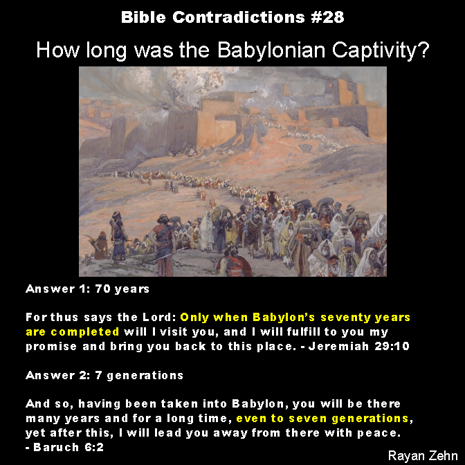 Ahem, in Baruch, we are told that the captivity will last seven generations, not merely 70 years. In order to reconcile these two disparate numbers, the Jews would’ve had to be having children at the age of ten or younger! That’s far too young, even by biblical-day standards.