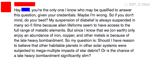 I write to my friends in academia or professional research who study those particular fields and ask for their input. Here’s a discussion I had earlier this year with a friend of mine who is a physicist working at LASP.
