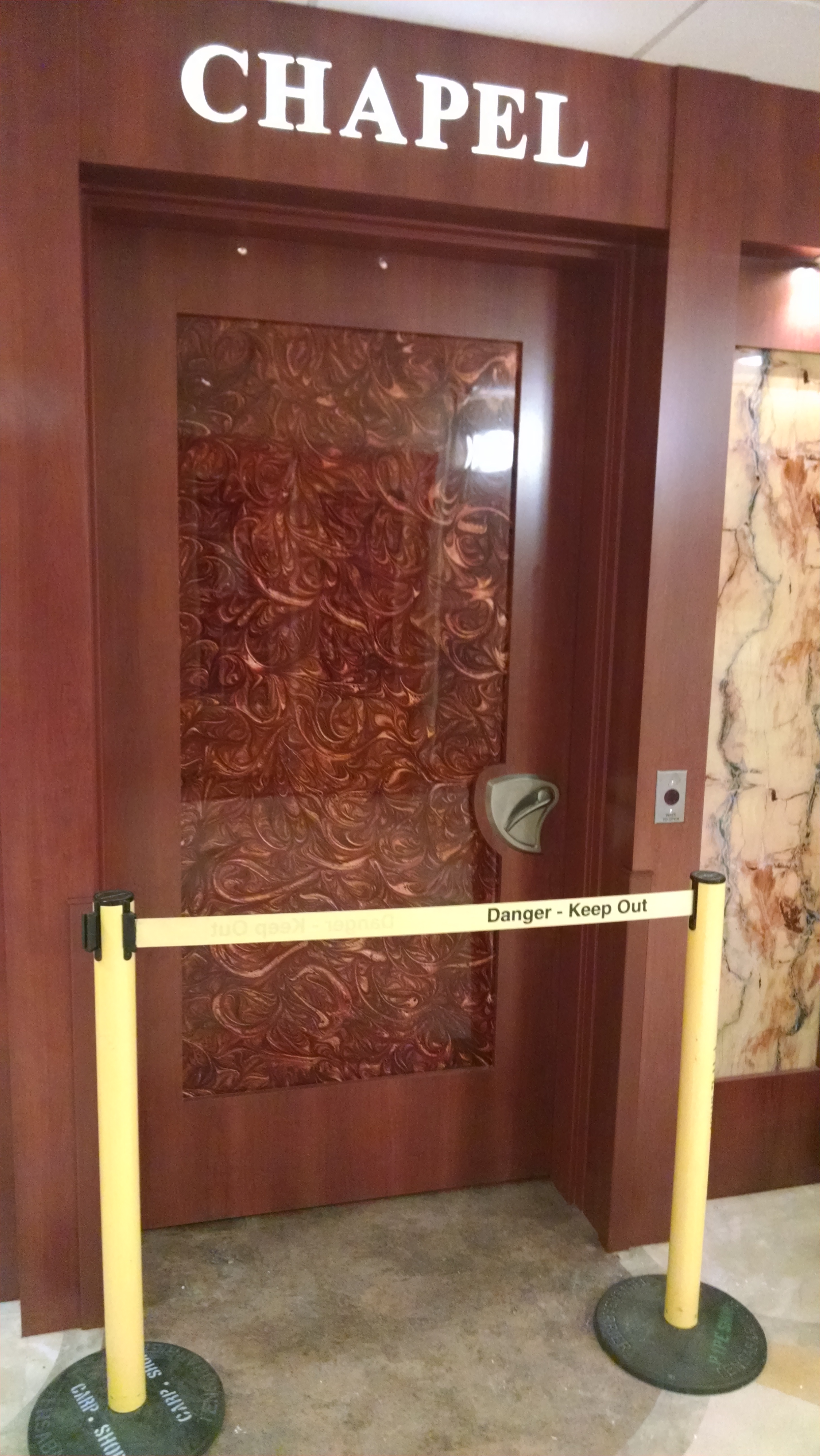 I was in a hospital last night (don’t worry; my visit wasn’t for health reasons), and I walked by the chapel and noticed it was closed. Although I’m sure it was merely closed for cleaning or basic maintenance, the sign they chose to keep people out was rather humorous. Danger!